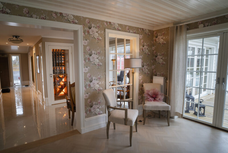 Byte av fönster och dörrar samt anpassning av planlösning till kundens önskemål och behov vilket inkluderade en tillbyggnation med tvätt och bad.