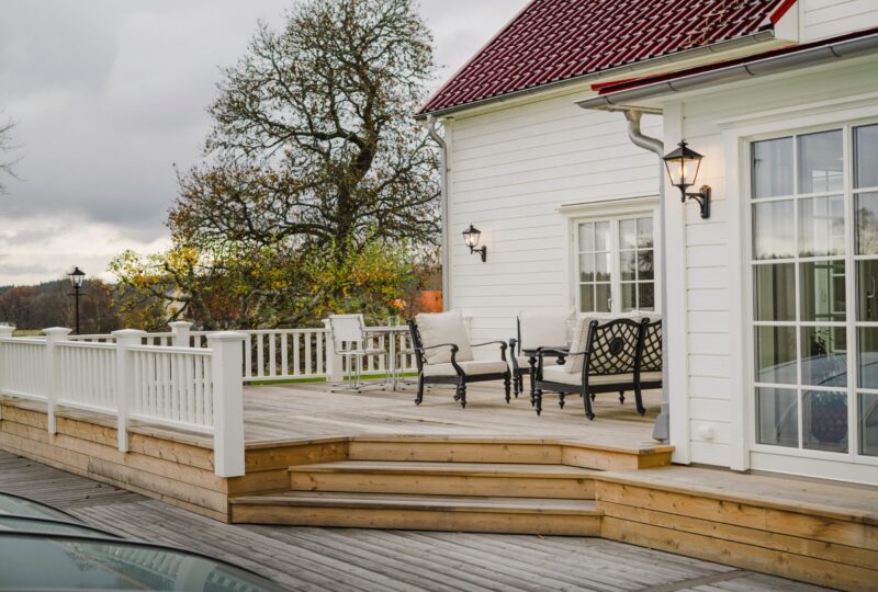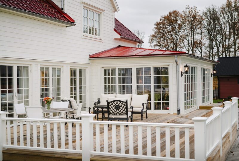 Nytt uterum och en stor luftig veranda med ett vackert bandtäckt tak väl anpassad till det befintliga huset.