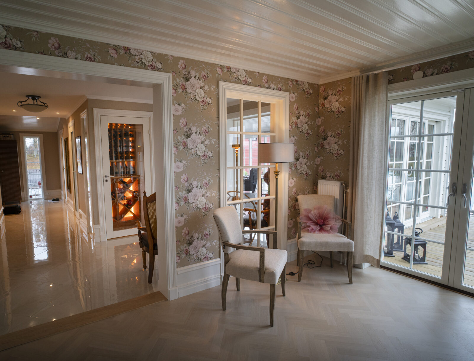 Byte av fönster och dörrar samt anpassning av planlösning till kundens önskemål och behov vilket inkluderade en tillbyggnation med tvätt och bad.