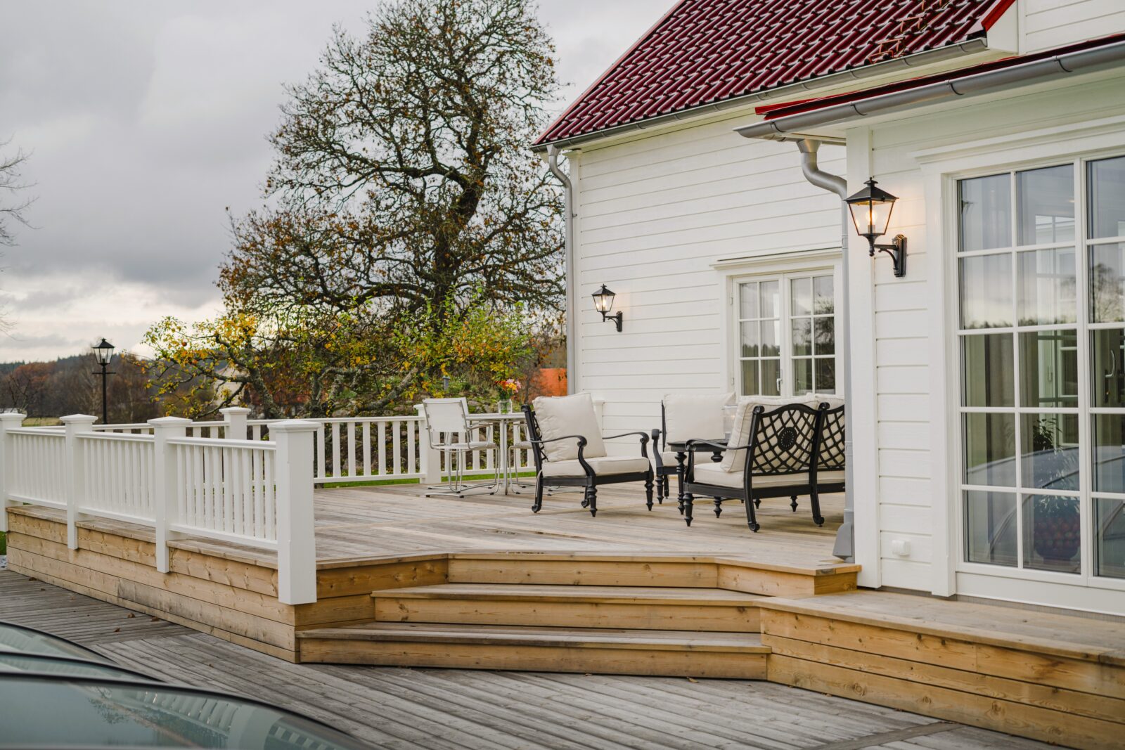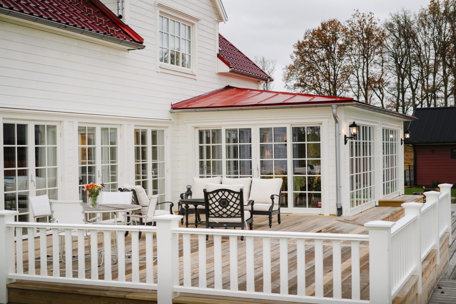 Nytt uterum och en stor luftig veranda med ett vackert bandtäckt tak väl anpassad till det befintliga huset.