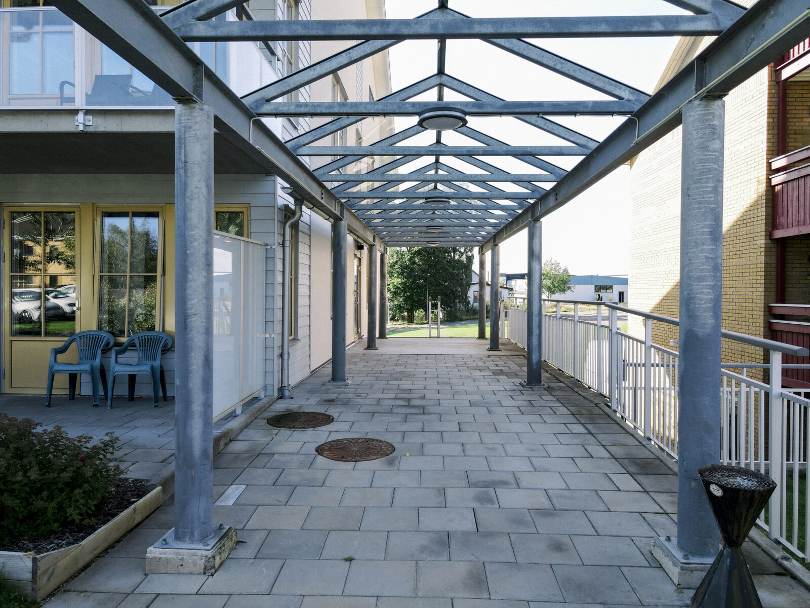 Lägenheterna är mycket yteffektiva, har god tillgänglighet och passar perfekt för dig som vill ha närhet till viss service, och dig som pensionär med tanke på tillgången till subventionerad lunch i Kullingshemmet. Dit tar man sig för övrigt torrskodd via en inglasad gång från huskropp till huskropp. I kv Björnen finns också gemensamhetsrum för måltider.