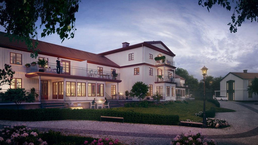 Efter semestern 2018 var samtliga lägenheter på Mossbergska fyllda med glad och nöjda kunder. En fantastisk miljö kring husen och de flesta har utsikt mot lummig ekskog eller sjön Mjörn. Alla lägenheter har generösa altaner eller balkonger. Allt detta på bara några minuters promenadavstånd från sjön Mjörn.