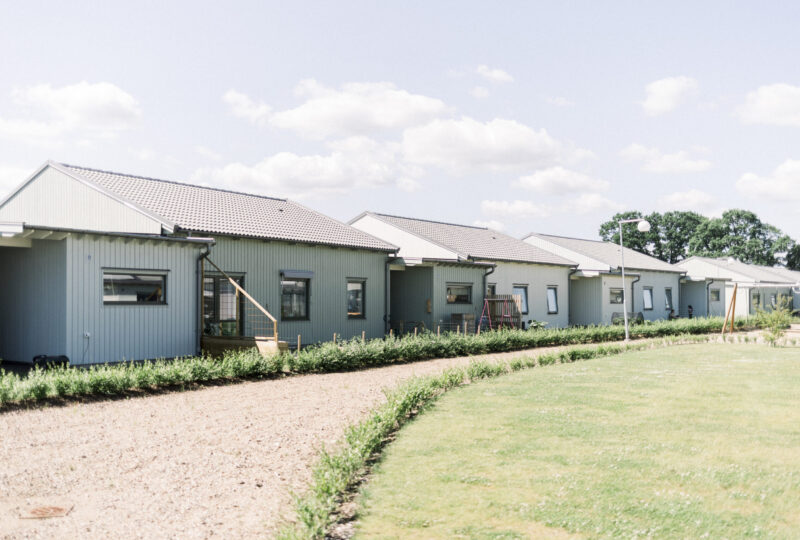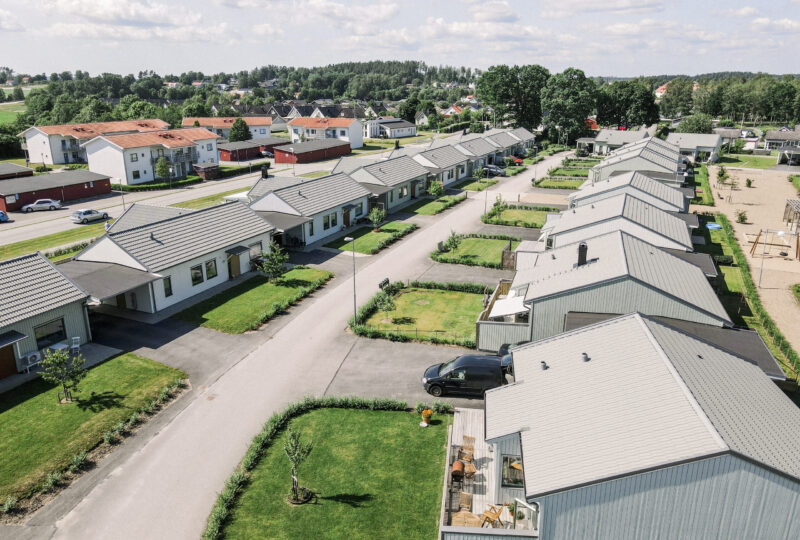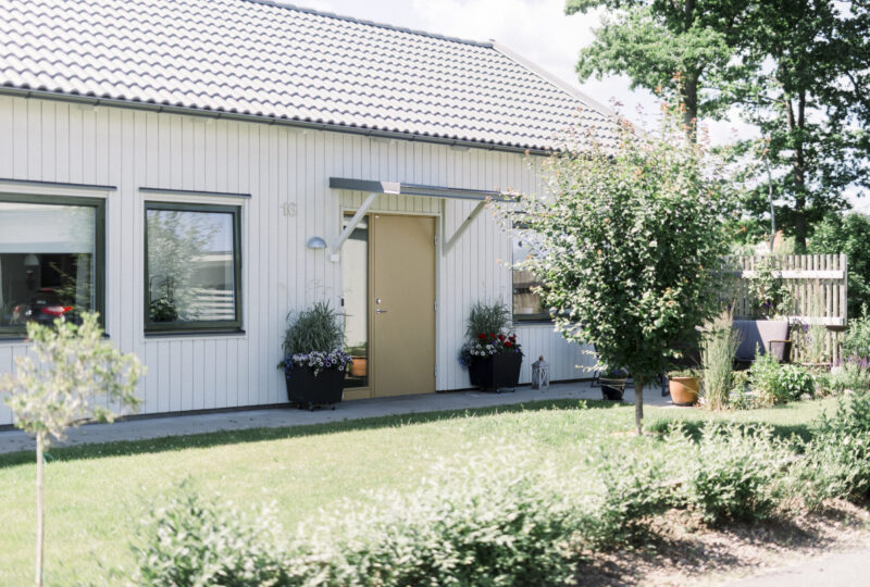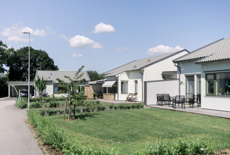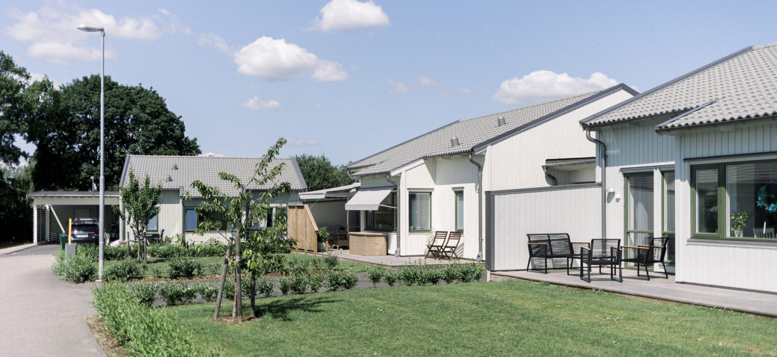 Alla hus har egna trädgårdar och trygga uteplatser i flera väderstreck. Småskalighetens tanke har fått råda när det gäller utformningen av de kompakta husen med smarta planlösningar och en tidstypisk arkitektur med panel i ljusa färgsättningar.