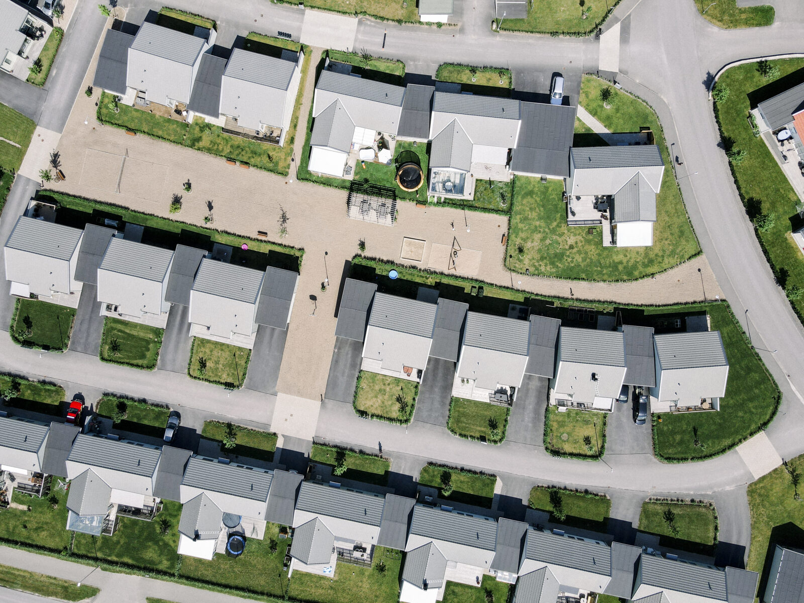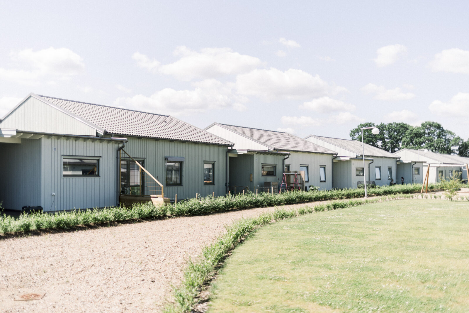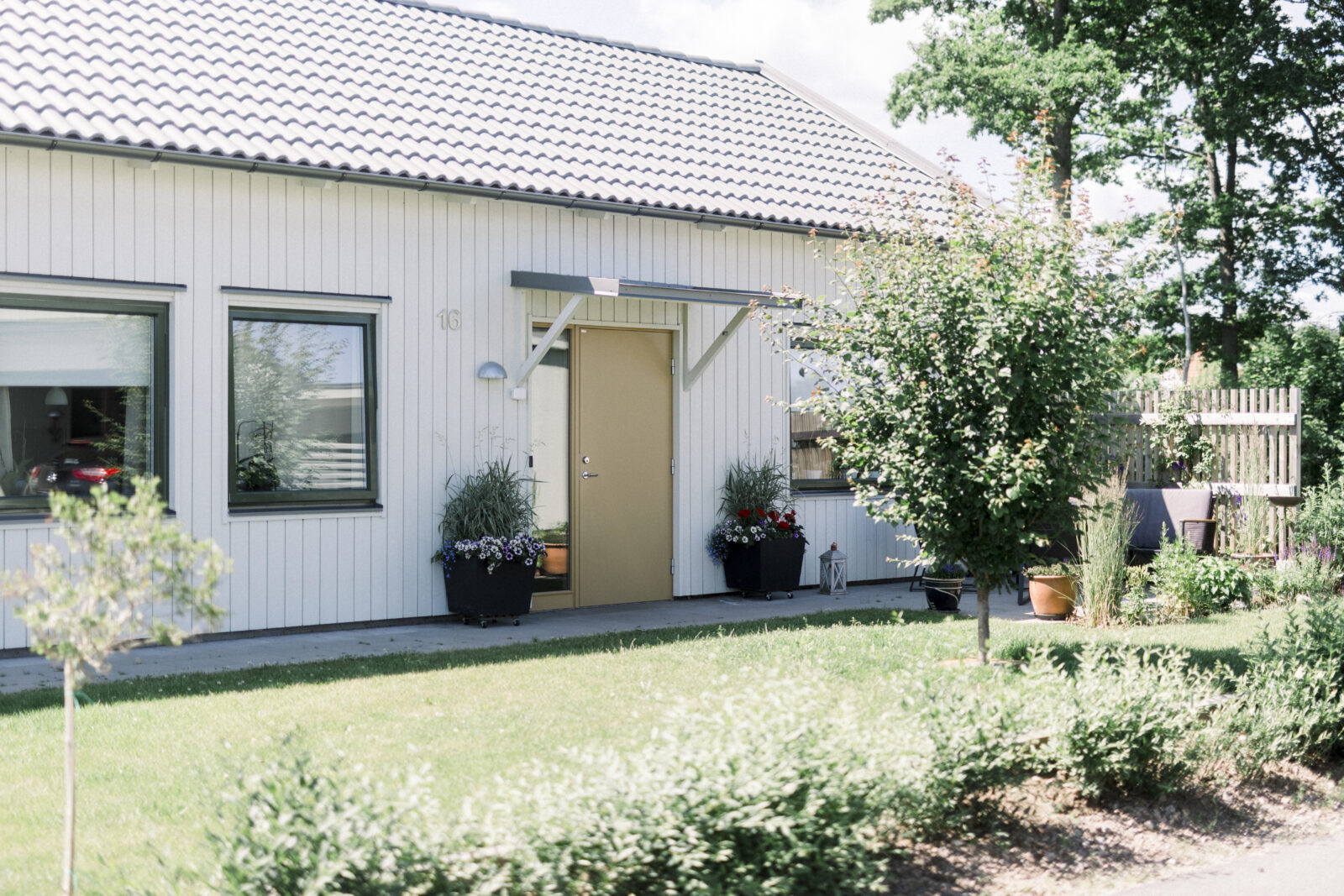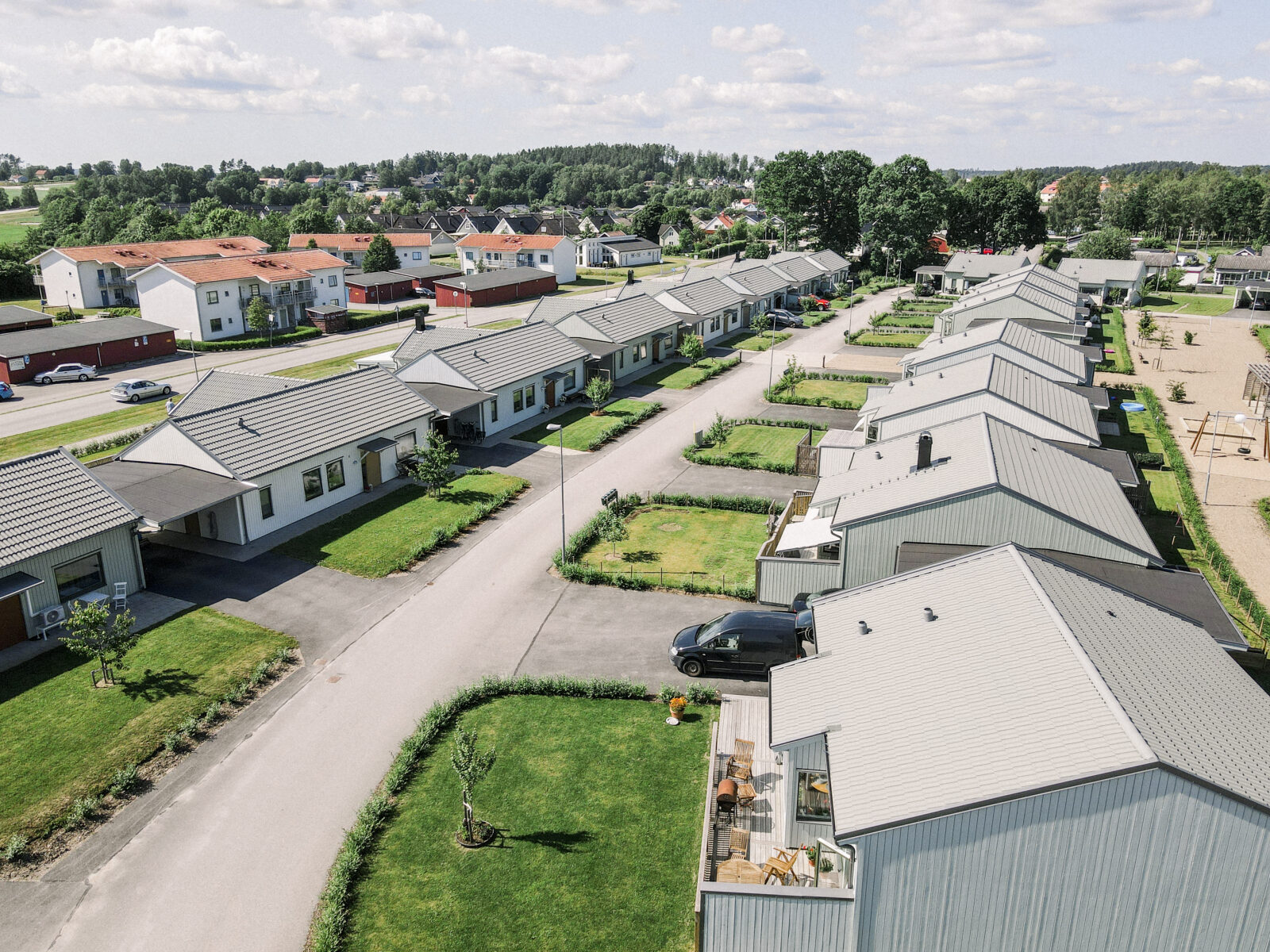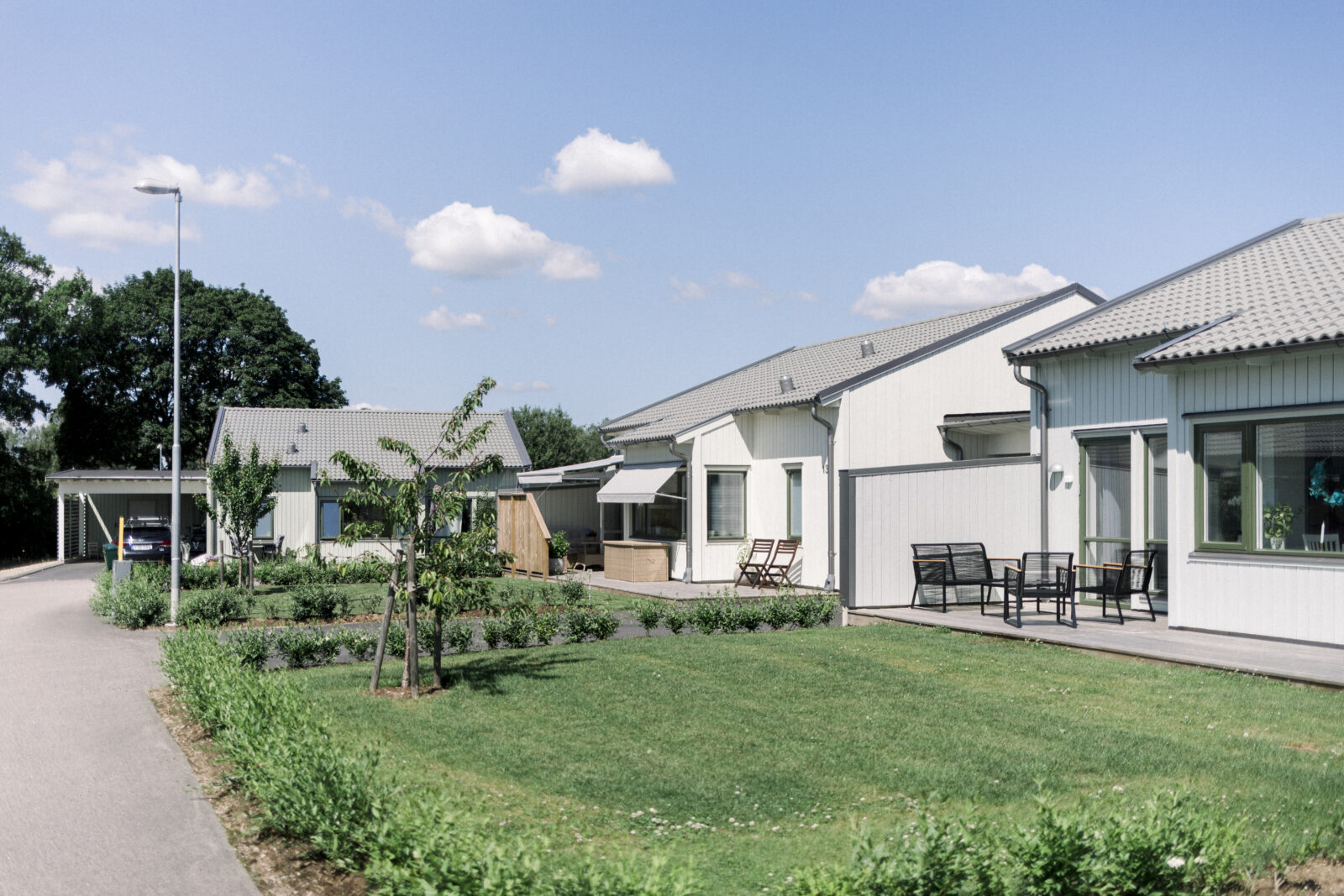Alla hus har egna trädgårdar och trygga uteplatser i flera väderstreck. Småskalighetens tanke har fått råda när det gäller utformningen av de kompakta husen med smarta planlösningar och en tidstypisk arkitektur med panel i ljusa färgsättningar.